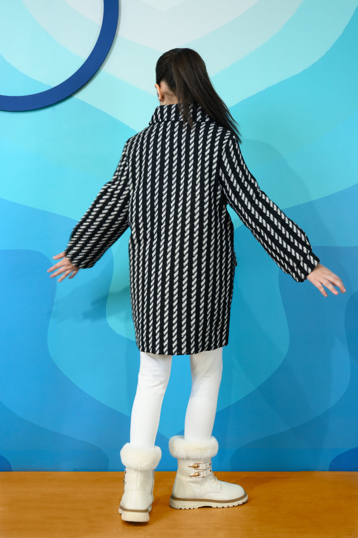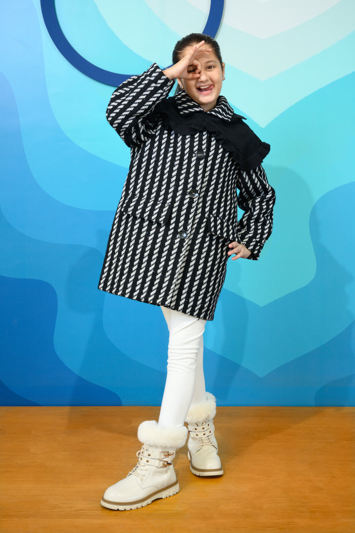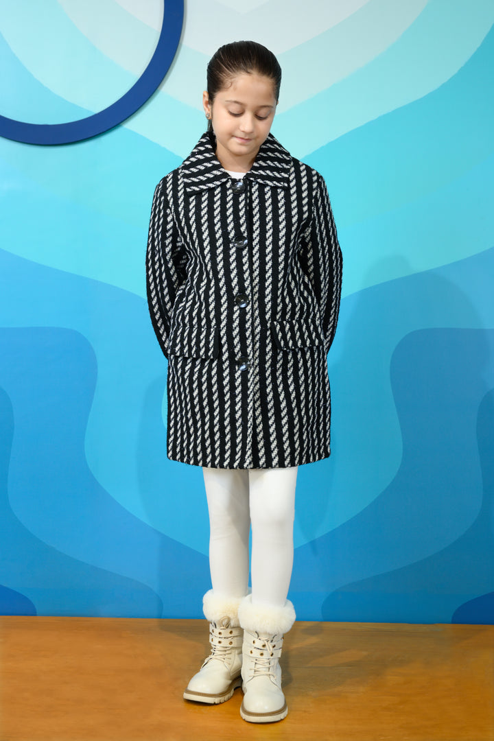 The silhouette is neat and structured, offering a refined, Parisian-inspired look while staying comfortable for children.